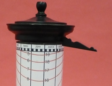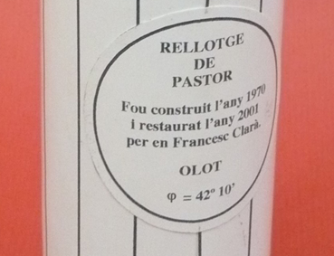 El gnòmon dirigit al N, cap a l’estrella Polar, marca l’hora amb l’ombra a l’interior del cilindre.