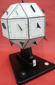 Maqueta que conté set rellotges de sol, segons l’orientació de les següents ciutats: Londres, Moscou, Nova York, Olot, Tòquio, Buenos Aires i El Caire.