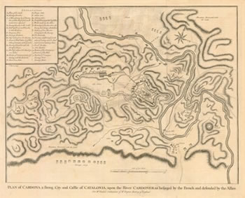 Catalunya va patir més que cap altre territori d’Espanya el conflicte generat per la Guerra de Successió. Els diversos setges a que foren sotmeses les ciutats catalanes, i especialment Barcelona, va fer que la producció de cartografia fos abundant per part dels dos bà ndols.
