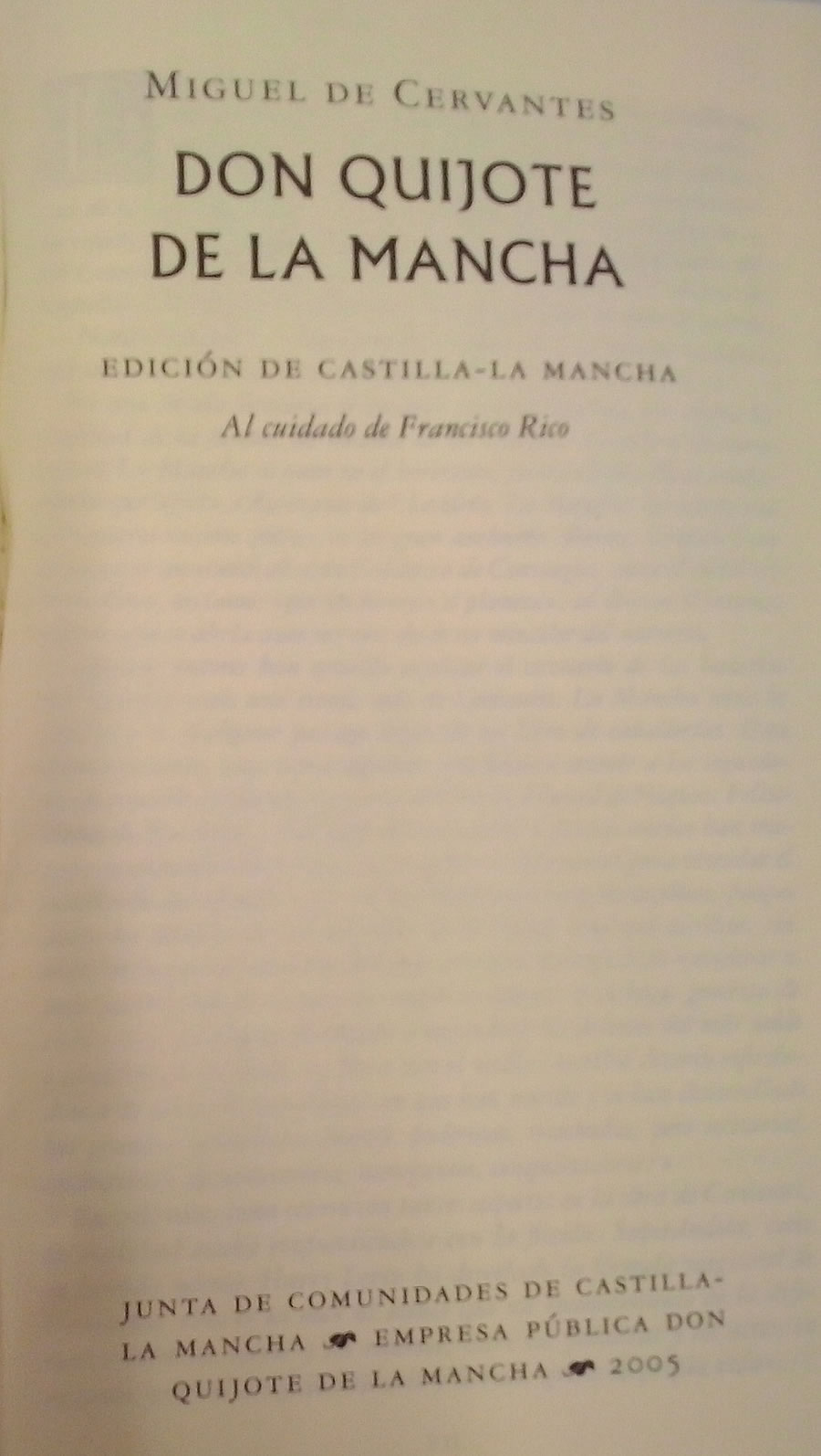 Madrid: Real Academia Española, Asociación de Academias de la Lengua Española y Alfaguara, con el patrocinio de la Junta de Castilla-La Mancha, Empresa Pública IV Centenario y la Fundación Caja Madrid, 2004.– xcii + 1250 + [8] pp.– 8º