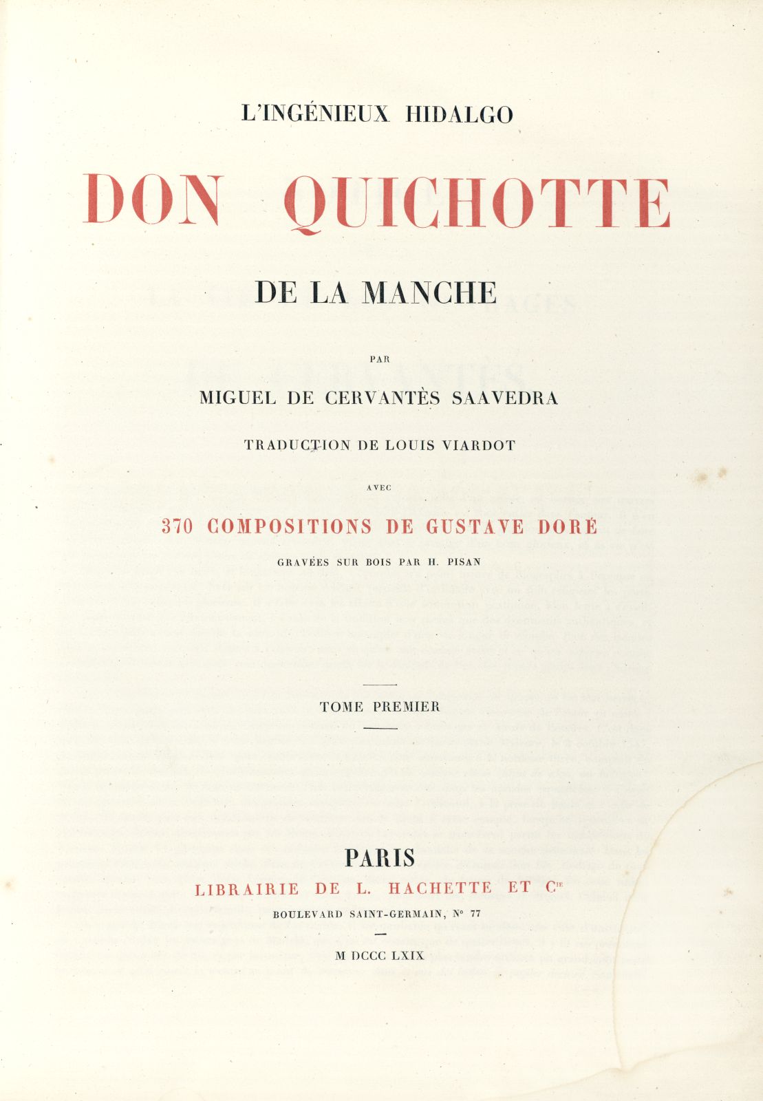 Traducción al francés de Louis Viardot (1800-1883).― Ilustraciones de Gustave Doré (1832-1883) grabadas por Héliodore-Joseph Pisan (1822-1890), por primera vez en gran formato.