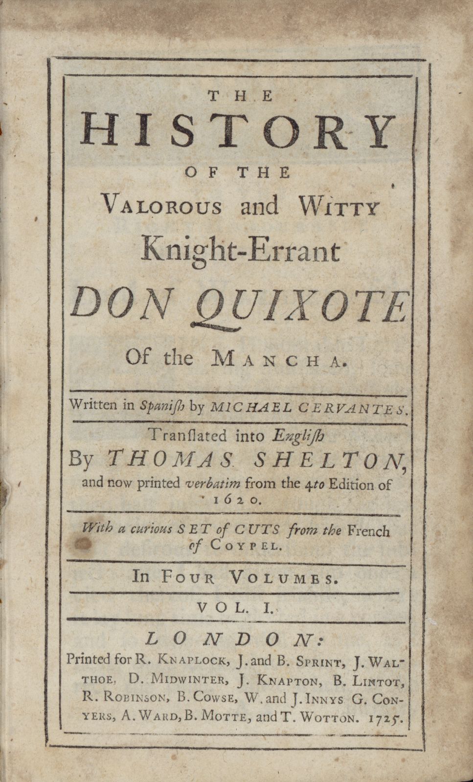 Con la «Vida de Cervantes» de Gregorio Mayans (1699-1681), primera biografÃa del autor.― Ilustraciones de William Hogarth (1697-1764) y John Vanderbank (1694-1739). grabadas por Gerard Vandergucht (1696-1776), Bernard Baron (c. 1696-1762), George Vertue (1684-1756) y Claude Du Bosc ((1682-c. 1746).