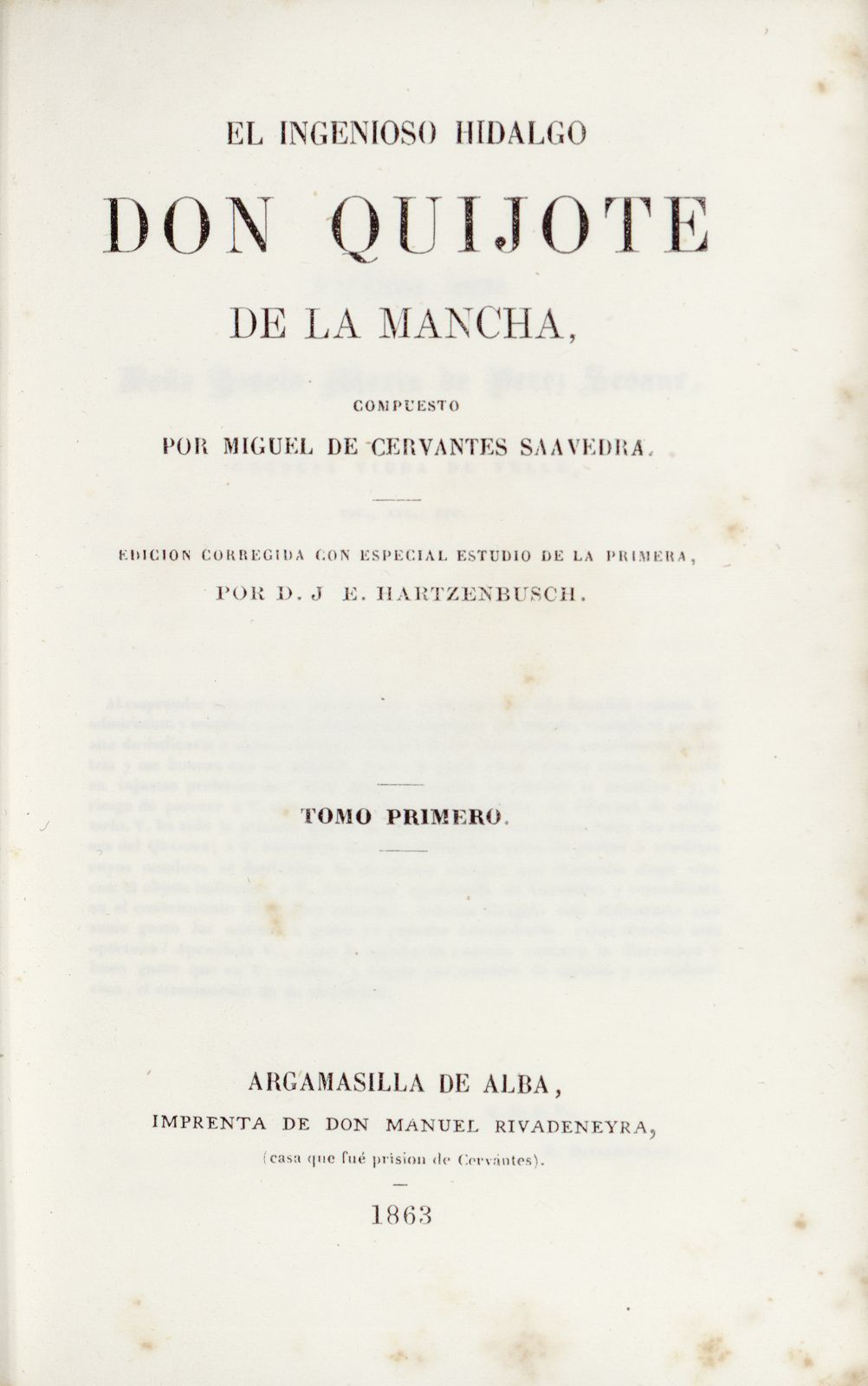 Argamasilla de Alba, Manuel Rivadeneyra, 1863.― 4 vols.― 16º