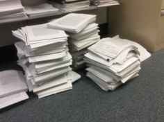 In the process of writing the book, Knox was piling up the different versions of the chapter's manuscripts on the floor of his office. It was sometimes useful, particularly when it was necessary to recheck a former hand note or when we were unable to find an older version in our computers. The pile kept staking up till the cleaning service started complaining. Some pictures were taken.