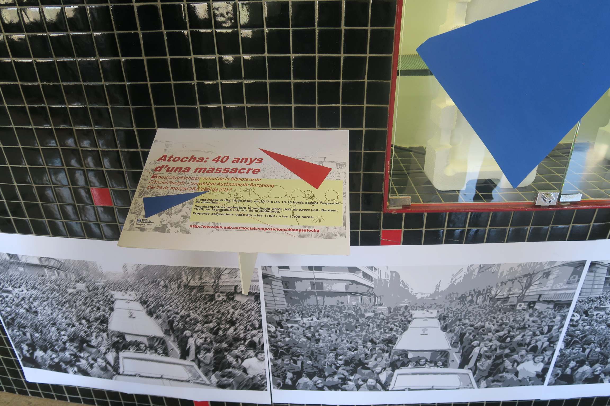La Biblioteca de Ciències Socials col·labora amb una exposició sobre aquests fets que s’inaugurarà el dia 14 de març de 2017 a les 13.15 hores. Intervindran el Dr. Alejandro Ruiz-Huerta, President de la Fundación Abogados de Atocha i el Sr. Raúl Cordero, Vicepresident de la Fundación Abogados de Atocha. Seguidament, hom podrà veure la pel·lícula Siete días de enero (J.A. Bardem, 1978) en la pantalla interior de la Biblioteca que a més es programarà cada dia fins el 28 d’abril a les 11:00 i a les 17:00 hores.