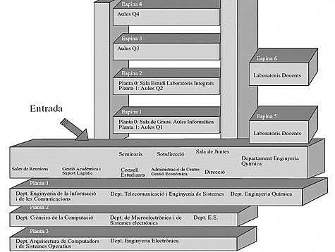 L'edifici de l'Escola d'Enginyeria al Campus UAB (Bellaterra)