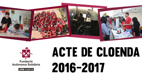 La Fundació Autònoma Solidària organitza un acte de cloenda del curs que se celebrarà el 24 de maig a les 12h al Rectorat. Es farà balanç de les dades més rellevants i es comptarà amb el testimoni de les persones que han participat en els projectes més novedosos d'aquest curs. L'acte serà moderat pel periodista Jordi Llompart. Llegir més