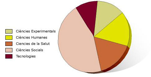 Distribució dels alumnes de primer i segon cicles per branques de coneixement, edat i sexe