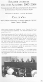 Solemne obertura del curs acadèmic 2003-2004. Commemoració del cinquentenari de la descoberta de l'estructura i funcionament de l'ADN. Presentació del molt il.lustre profesor Carles Vilà, pel Acadèmic Numerari, vocal de la Junta de l'ACVC, Jaume Camps i Rabadà
