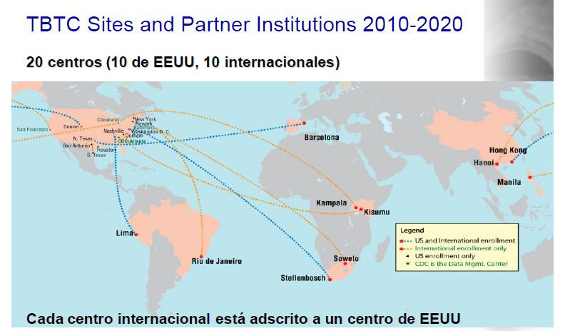 Set hospitals catalans, entre ells l’Hospital de la Vall d’Hebron, el de Sant Pau i l’Unitat de Tuberculosi Experimental de l’Hospital Germans Trias i Pujol; juntament amb l’Agència de Salut Pública de Barcelona participen mitjançant l’Unitat d’Investigació en Tuberculosi de Barcelona en el projecte mundial del Tuberculosis Trials Consortium (TBTC) .