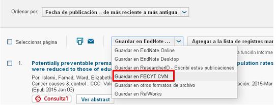 La FECYT ha desenvolupat, conjuntament amb Elsevier i Thomson Reuters, una eina que permet exportar els articles procedents de les bases de dades Scopus i Web of Science al Currículm Vitae Normalitzat (CVN).