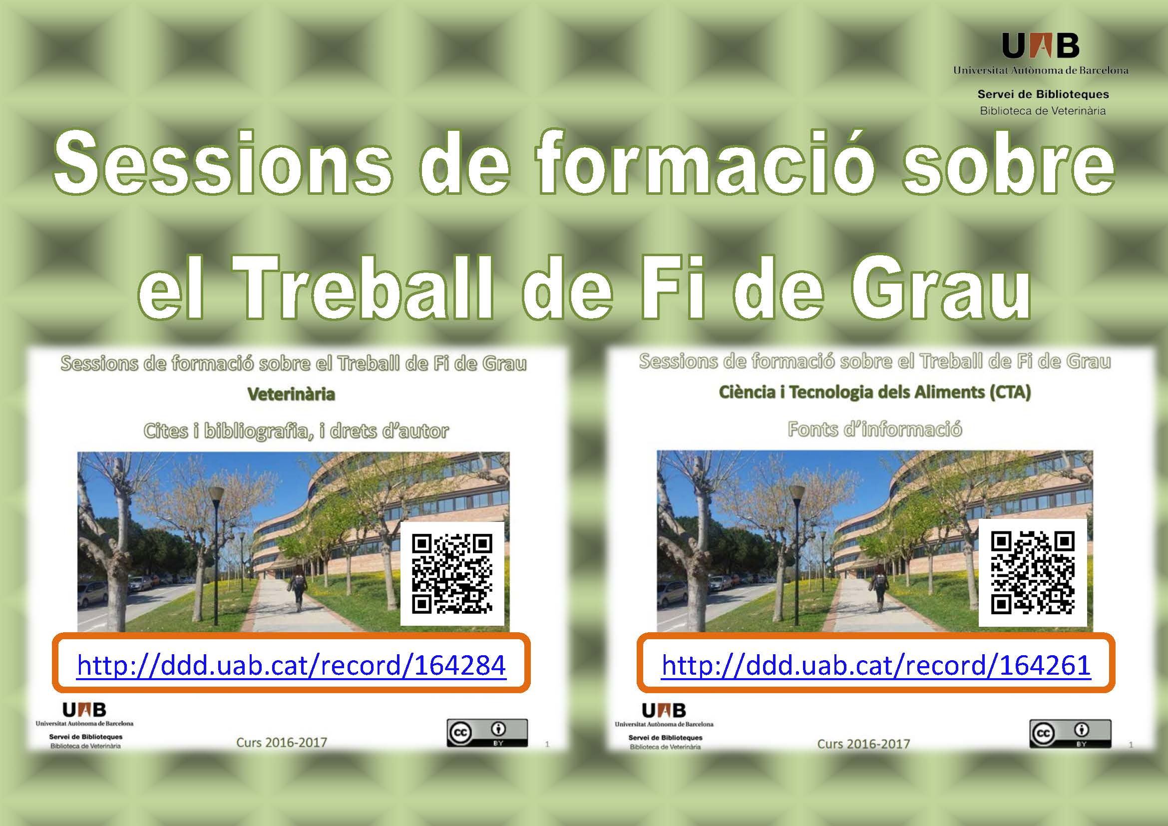 Ja podeu consultar les presentacions sobre metodologia del TFG a Veterinària i CTA!