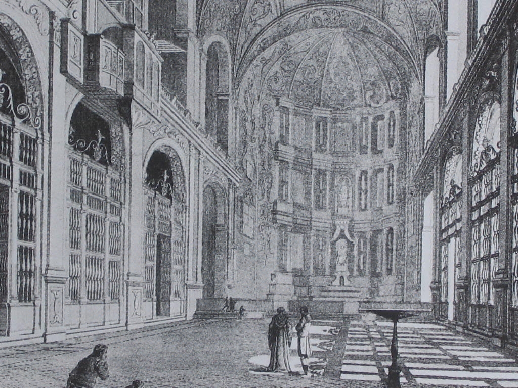 Dibuix preparatori, atribuït a François Liegier, pel llibre d'Alexandre de Laborde Viatge a Espanya. La imatge, tot i que molt difuminda, mostra com havia pogut ser el monumental retaule major.