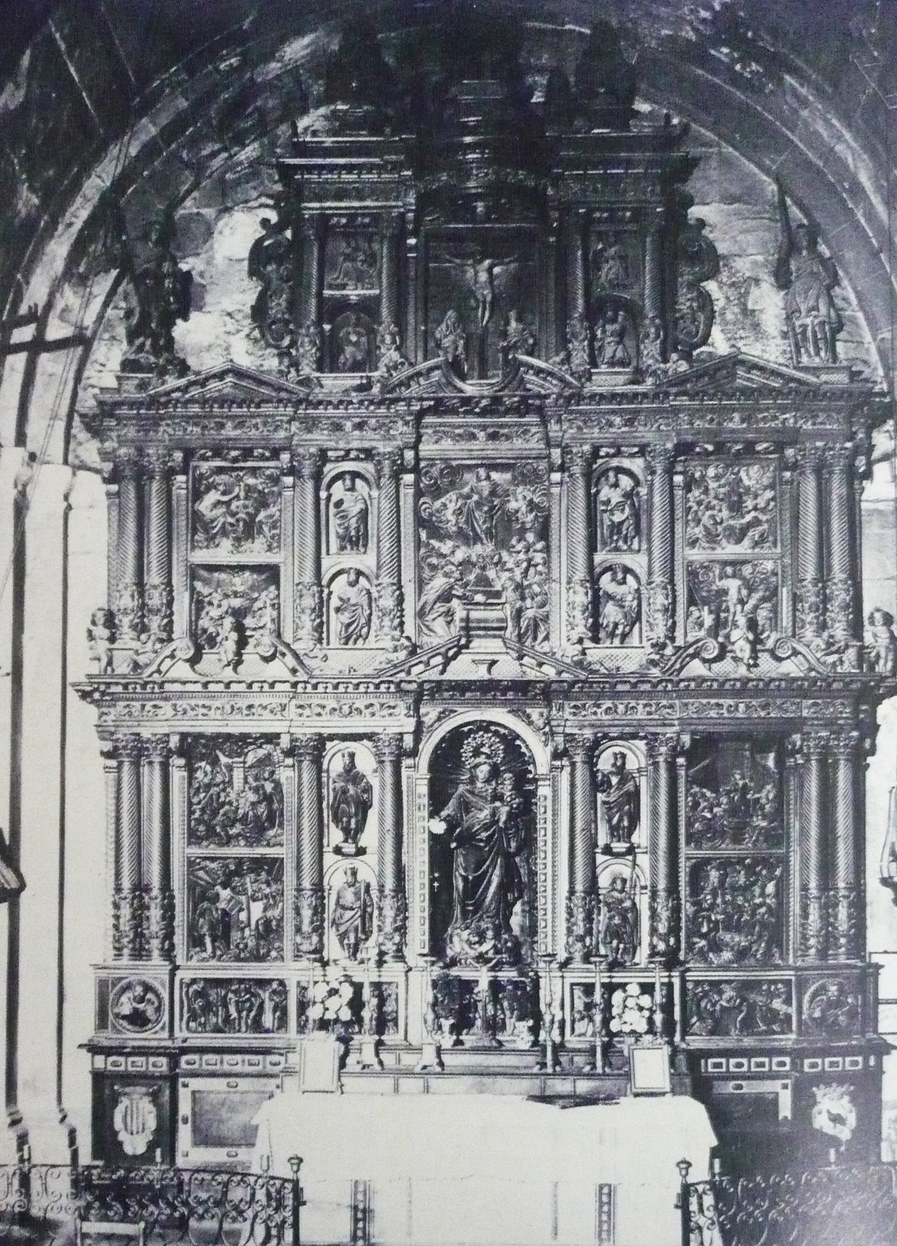 Retaule en el que varen intervenir-hi diferents mans. Al 1614 es contracten els escultors Benet Baró i Jeroni Clavaria, juntament amb el fuster Marçal Prats. Al mateix 1614, en principi, s'hauria contractat a Agustí Pujol I. Els vuit plafons de la predel·la es correspondrien amb els treballs contractats a Onofre Fuster el 1618. A la dècade 1630 es contracta a Josep i Llàtzer Tramulles, que no acaben els treballs fins més enllà de 1662. El daurat s'allargaria uns quants anys més. Es trobava a l'interior de l'església parroquial de Sant Joan Baptista.