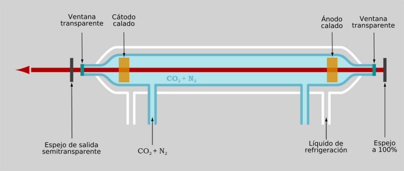 Els anomenats làsers de CO2 utilitzen una barreja de CO2, N2 i He per funcionar. És un dels làsers comercials més potents (desenes de Watts, funcionant en continu) i dels que tenen més eficiència. Emeten en l’infraroig, normalment a 10.6µm, però per aplicacions científiques es poden sintonitzar. En aquest cas poden emetre en desenes de línies espectrals al voltant de les bandes de 10.6µm o de 9.6µm.