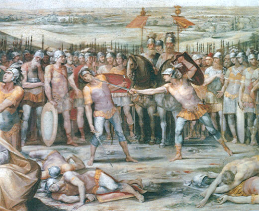 Tul·lus Hostili (673-642aC.), un rei llatí, es va distingir com a guerrer, va destruir Alba Longa, la ciutat metròpoli que havia fundat Julus, i va conquerir altres ciutats etrusques i llatines. En el transcurs de la guerra d’Alba Longa hem de situar l’episodi llegendari dels Horacis i Curiacis (imatges 1, 2).