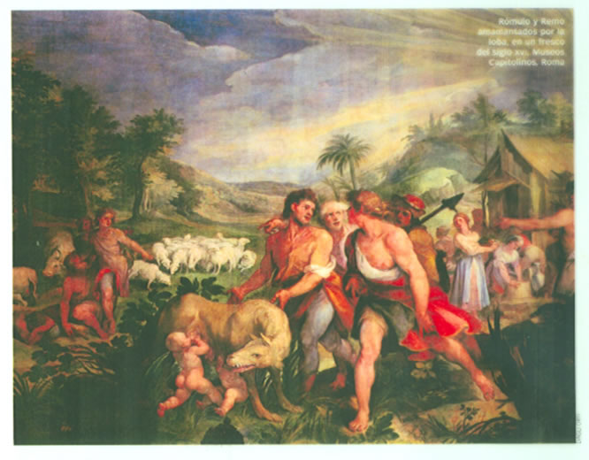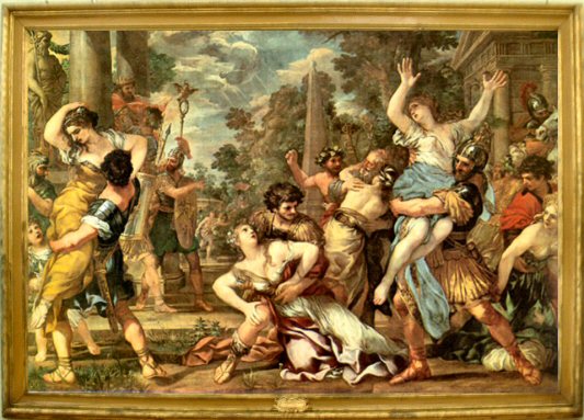 Ròmul també va crear un lloc d’asil on s’aplegaren els fugitius d’altres llocs per augmentar-ne així la població, va constituir tres tribus, de cadascuna de les quals elegia 100 cavallers i 100 senadors, va tramar el rapte de les sabines (imatges 1, 2, 3, 4, 5, 6, 7) perquè la comunitat no tenia dones i, causa d’aquest fet, els romans s’uniren amb els sabins.