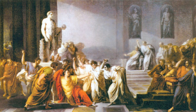 Cèsar va basar el seu èxit en tres pilars sòlids que li garantiren un gran prestigi. En primer lloc, comptava amb la fidelitat dels soldats veterans, que havien rebut terres en compensació dels serveis prestats; també tenia el suport de la classe social que pertanyia a l'ordre eqüestre, i fonamentava el seu prestigi popular en la simpatia de la plebs. Amb aquests suports sòlids fou nomenat dictador vitalici. A més, va acumular en la seva persona els càrrecs més importants: censor, pòntifex màxim i imperator, que aleshores significava "cap de l'exèrcit". Malgrat el seu poder i la seva activitat política frenètica, els aristòcrates consideraven Cèsar com un opressor de les velles llibertats republicanes. Per tot això, els nobles, dirigits per Brutus i Cassi, organitzaren una conjura que culminà amb l'assassinat de Cèsar el dia de les idus de març (15 de març) de l'any 44 aC., en una sessió del Senat celebrada al teatre de Pompeu. La mort de Cèsar és descrita en: Plutarc, Vides paral.leles IX, LXIII -LXVI; Suetoni, Vida dels dotze Cèsars 1, 82, 1-3. (imatges 1, 2, 3, 4).