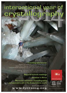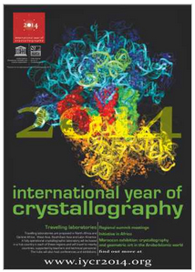A la banda de l'expositor petit de la Biblioteca, s'ha presentat l'Any Internacional de la Cristal·lografia 2014 amb material promocional.