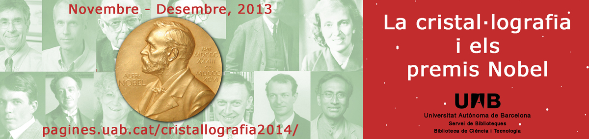 El muntatge que s’ha fet a l’expositor gran de la Biblioteca parteix d’un article de revista del catedràtic de la UAB Joan Piniella, actual Director Científic del Servei de Difracció de Raigs X. Al llarg d’una línia temporal, es van desgranant els personatges que, guardonats amb un premi Nobel de Química, de Física, o de Fisiologia o Medicina, han fet (fan i faran) més important la cristal·lografia.