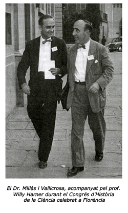 Millàs va aconseguir de mantenir, durant els anys difícils de la Guerra Civil, la Segona Guerra Mundial i la postguerra, un contacte fluid amb historiadors estrangers, particularment amb George Sarton, un dels fundadors de la història de la ciència als Estats Units i editor i valedor de la revista Isis. Millàs compartia amb Sarton la idea que la ciència era una part integrant de la cultura i havia de figurar de manera prominent en un «nou humanisme» (vegeu l’edició de la correspondència entre tots dos realitzada per T. F. Glick, 1990). Com apunta el mateix Glick, «a falta de suport institucional per a la història de la ciència, Millàs i la seva obra van fer de pont entre la dislocació de la guerra i els primers anys del franquisme, mantenint d’aquesta manera amb vida a Espanya una història de la ciència d’abast internacional» (Glick, Isis, vol. 68, no. 2, 1977, p. 283). La carrera de Millàs com a historiador de la ciència va culminar el 1958, amb la seva elecció com a president de l’Acadèmia Internacional d’Història de la Ciència i amb l’organització a Barcelona, el 1959, del 9è Congrés Internacional d’Història de la Ciència, que va presidir. Encara que, des del punt de vista institucional, la consolidació de la història de la ciència hagi passat pels departaments de Medicina i de Filosofia, la tasca de Millàs i els seus deixebles ha tingut efectes palpables per a la disciplina, tant pel que fa al rigor del treball com a la participació en els fòrums internacionals. (1)