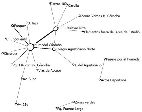 Por último, se esquematiza lo señalado mediante un gráfico que permite visualizar la red.