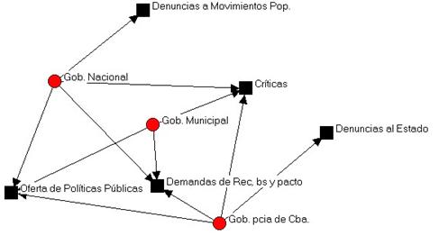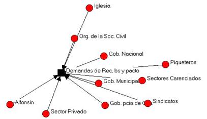 El período analizado reclamaba también un abordaje novedoso. Hoy uno puede leer, a manera retrospectiva estos datos y observar la potencia que posee el análisis como estrategia metodológica para el abordaje de los conflictos sociales. Recordemos que a finales del año 2001 Argentina entró en un creciente estado de conmoción social que se evidenció en el estallido del “19 y 20” de diciembre. Posteriormente a este acontecimiento, los niveles de pobreza estallaron expresando la crisis de un modelo de acumulación gestado desde los años de la última dictadura, y la crisis institucional demandó la renovación de numerosos espacios de dirección, electivos y no electivos, para garantizar la mínima gobernabilidad. Los actores que observáramos en las redes acaparando el centro de la conflictividad social, son los que en los años siguientes a esta crisis dominarán el escenario político y demandarán al Estado y el sector privado una fuerte redefinición. Actualmente las instituciones se han reconfigurado, pero permanecen en ellas lógicas rechazadas fuertemente por diferentes sectores sociales.
