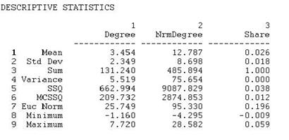 Ilustración 11. Estadística descriptiva del cálculo del grado nodal.