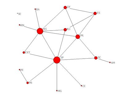 Por otro lado, de los nueve actores que conforman la red fundacional, cinco se encuentran en la red de acción, lo que muestra la continuidad y sobre todo la asiduidad del trabajo sobre el tema de la descentralización que venía desarrollando la red desde hacia casi tres décadas.