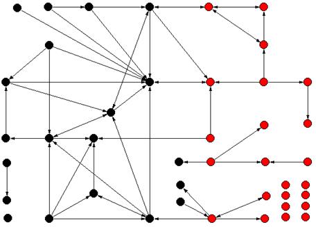 Los CFO (en negro) mantienen más relaciones que los CSO (en rojo). En los primeros, solamente 4 actores están aislados (contamos a los 3 actores que mantienen solamente relaciones con CSO). En el grupo de los CSO, 8 actores están aislados. Solamente 6 de 56 relaciones son inter-clases, de los cuales 2 son recíprocas.