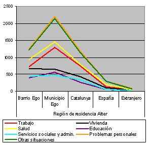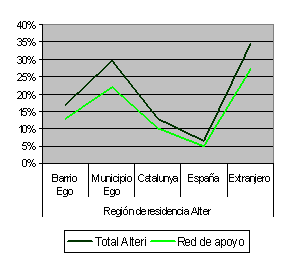 Otra observación interesante es que, entre los inmigrantes, el apoyo que se intercambia con los Alteri que residen en su mismo barrio proviene de Alteri también inmigrantes, mientras que en el resto del municipio pesa un poco más el intercambio de apoyos con personas autóctonas, lo que puede ser una expresión de la segregación residencial (Martori y Hoberg, 2008).