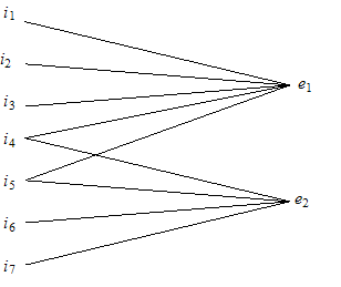 Cada individuo es un miembro de un cierto subconjunto de instituciones. Por ejemplo, si el cardinal del conjunto I es siete, donde E tuviese dos elementos, podríamos tener las siguientes relaciones de pertenencia