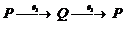 También hay morfismos e1_e1 de P a Q, de Q a P y de Q a Q. Aquí tenemos otros ejemplos de morfismos compuestos: