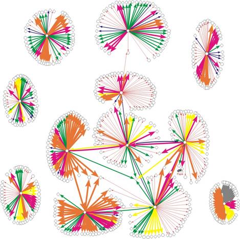 [20] Un camino (path) es la “secuencia de nodos y relaciones en la cual cada nodo sólo puede ser usado una vez” (Glosario de Análisis de Redes Sociales, elaborado por la Lista Redes en el congreso del International Network of Social Network Analysis de Budapest, en abril de 2001, cfr. http://revista-redes.rediris.es/glosario.pdf). La virtualidad de Visual Path está en la identificación de geodésicos, es decir, de los caminos más cortos entre dos nodos.