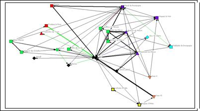 Figure 4. Les liens de parenté et de fidélité structurant le réseau « odonien »
