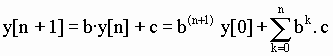 El sumatorio de la derecha de la expresión anterior corresponde a la suma de los términos de una progresión geométrica de razón b. Recordemos el valor de esta suma, dada en el articulo "Torres de Hanoi": Sn = a1 + a2 +