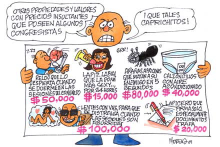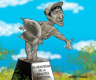 Lo otro es el carácter eminentemente crítico (y aguafiestero) de los caricaturistas. Sobre todo en una campaña política, en la que las sensibilidades y posiciones traslucen simpatías y disgustos que se pueden confundir con adhesiones o mala leche. Mario Molina, ilustrador y caricaturista de CARETAS y colaborador de Liberación, enfila: "no concibo un humor político que sea laudatorio o pasado por agua tibia, no tiene sentido, sería ilustración pero no caricatura". Heduardo toma la posta: "nosotros nos alegramos cuando alguien hace algo bueno, pero eso no te motiva para hacer una caricatura, porque la caricatura política es tomarle el pelo a alguien". Alfredo difiere: "nosotros elegimos a nuestros adversarios, contra ellos nos enfrentamos, no podemos usar las mismas armas con las que consideramos a nuestros amigos, aliados o simpatizantes... es un asunto de opciones". Molina insiste: "tú tienes tu opción y criticas desde esa opción a todos..., todos tienen algo desde donde se les puede coger". Alfredo espera: "los caricaturistas deberíamos estar aislados, en mi caso no lo he podido hacer, es al revés, yo soy amigo de muchos políticos, siempre las mejores caricaturas son de gente que no conozco". Resumen: libertad plena. Por eso, mientras Alfredo prefiere no esconder su simpatía toledista, Heduardo opta por navegar por aguas libres de compromisos políticos. ¿Situaciones anómalas? Respetar el tiempo de gracia de un Presidente recién nombrado, estar de acuerdo con algún mandatario, y la peor de todas (y aún inédita para felicidad de ellos y tragedia de los demás peruanos): que no suceda nada. Pero, como decía algún galo de Astérix, de ésos que hicieron que Molina descubra temprano su vocación, "eso no va a pasar mañana". Total, apunta Marcos, "el humor peruano está nutrido, como el valse criollo, de tragedia, de comedia, de alegría, a pesar de todo, y de muertes y renaceres diarios". Al fin y al cabo vivimos, para bien o para mal, en el país de las maravillas, donde convergen viejas pitucas y dignos calatos, dirigidos intermitentemente por hombres que no pueden irse. Aunque al final todos se van, por más que la canción anuncie su retorno. (Jerónimo Pimentel).