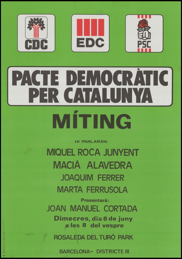 | Matèria: | Eleccions ; Cartells ; Espanya ; Catalunya ; Pacte Democràtic per Catalunya Cartells |