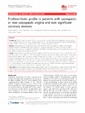 Background: Patients with vasospastic (VA) or non vasospastic angina (NVA) without significant coronary stenosis have a reduced risk of infarction but is unclear whether or not this may be attributable to a lack of prothrombotic profile - similar to that present in patients with stable coronary artery disease (CAD). Methods: Plasma levels of von Willebrand factor, total and free tissue factor pathway inhibitor, plasminogen activator inhibitor-1, and fibrinogen were analyzed in 15 patients with stable VA and 23 with NVA, all with vasoconstrictive response to acetylcholine although with different severity. Results were compared with those of 20 age-matched controls and 10 patients with CAD. Results: Plasma levels of von Willebrand factor in patients with VA or NVA were higher than in controls (207 ± 62 and 203 ± 69% vs 121 ± 38%, p < 0. 001) and tended to be lower than in CAD patients (264 ± 65, p = 0. 145). They also presented higher total tissue factor pathway inhibitor (123 ± 18 and 111 ± 25 vs 88 ± 14, ng/ml p < 0. 001) and plasminogen activator inhibitor-1 levels than controls (51 ± 30 and 52 ± 31% vs 19 ± 9 ng/ml, p < 0. 001) and similar to CAD patients (134 ± 23 and 62 ± 31, respectively, ns). Moreover, free tissue factor pathway inhibitor plasma levels were lower than controls (18 ± 5 and 17 ± 5 vs 23 ± 8 ng/ml, p = 0. 002) and similar to CAD patients (14 ± 5, ns). Despite this prothrombotic condition none of VA or NVA patients presented a myocardial infarction during a 9 year follow-up, an observation also reported in larger series. Conclusions: During a stable phase of their disease, patients with VA or NVA present a prothrombotic profile that might eventually contribute to occurrence of myocardial infarction. The rarity of these events, however, may suggests that ill defined factors would protect these patients from coronary plaque rupture/fissure. |