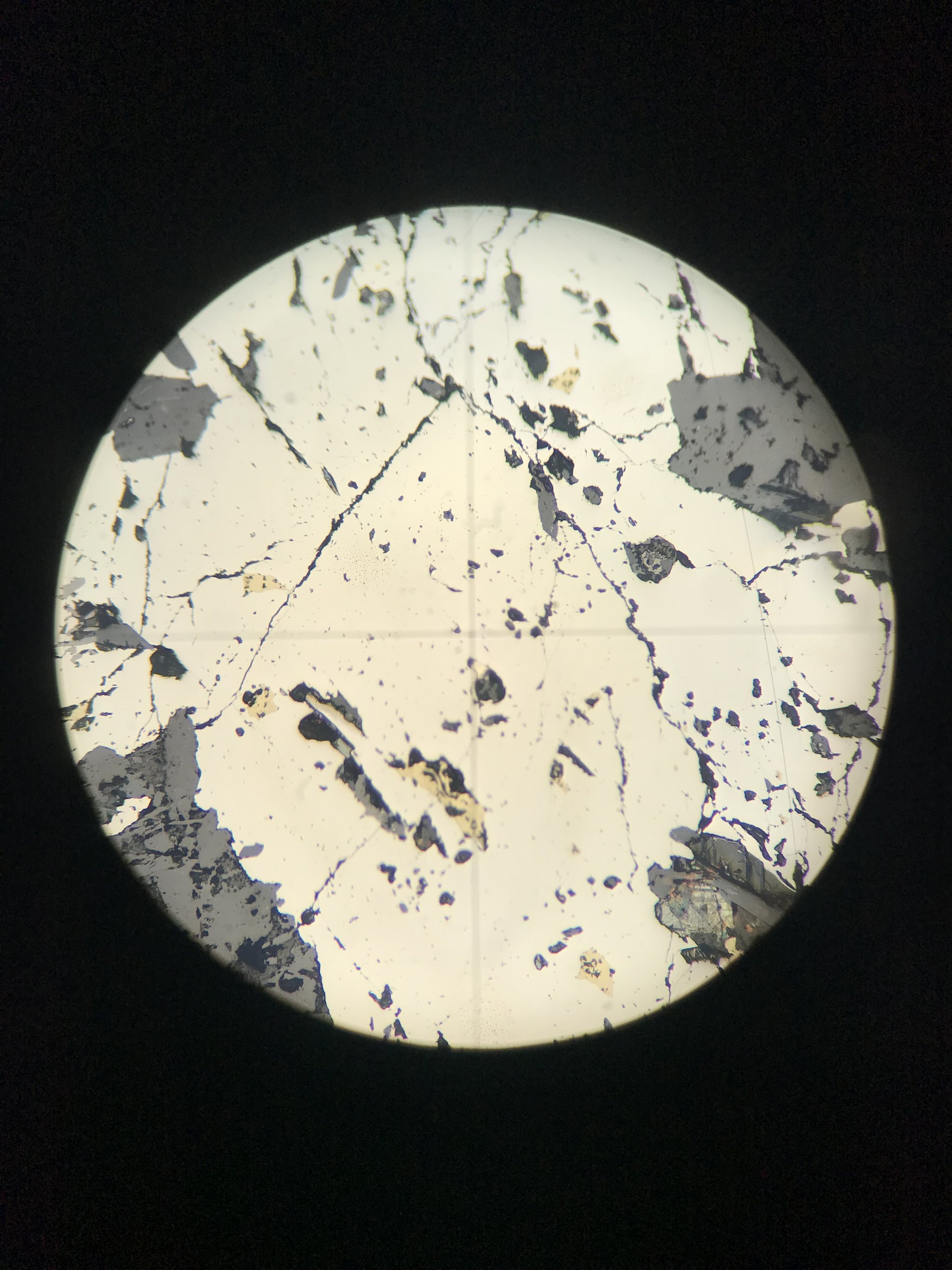 Matèria: Geologia ; Mineralogia ; Microscopi petrogràfic ; Làmina prima ; Cristall ; Transparent ; Opac ; Metàl·lic ; Geología ; Mineralogía ; Microscopio petrográfico ; Lámina delgada ; Cristal ; Transparente ; Opaco ; Metálico ; Geology ; Mineralogy ; Petrographic Microscope ; Thin Section ; Crystal ; Opaque ; Metal