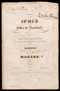 Conjunt de particel·les dels següents instruments: Violí principal, 1r violí, 2n violí, viola, contrabaix, flauta, oboè, clarinets, fagots, 1a i 2a trompes, 3a i 4a trompes, cornetes, trompetes, 1r trombó, 2n trombó, 3r trombó, figle, timbals, bombo i címbals