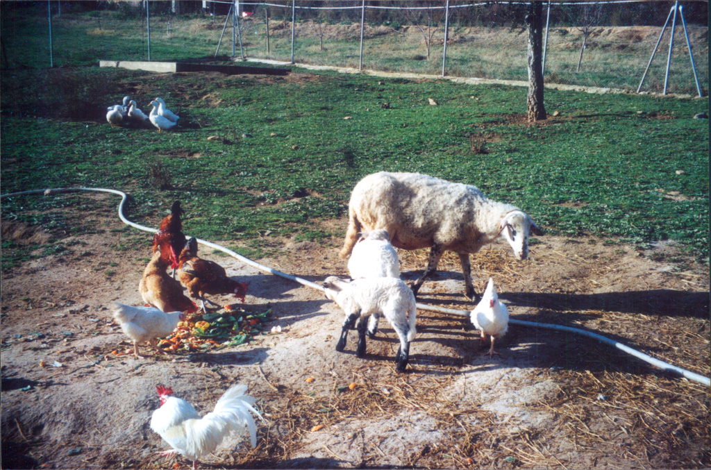 Al principio de la puesta en marcha del gallinero y del resto de instalaciones ganaderas (2001), se había compartido el parque, combinando las aves con el núcleo original de ovino (2 corderos hembras y 1 cordero macho de raza Ripollesa -de la variedad denominada mejorada de E. Royo-) 1024x677, 1.1 MB |