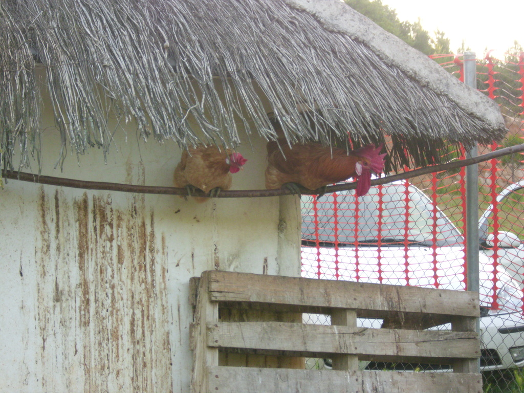 Aseladero exterior bajo cubierto. En invierno duermen aquí o en algún árbol, sin problemas. Si las gallinas son de diferente fecha de entrada, a veces se forman bandadas separadas, con machos distintos y cada una va por su lado 1024x768, 385.8 KB |