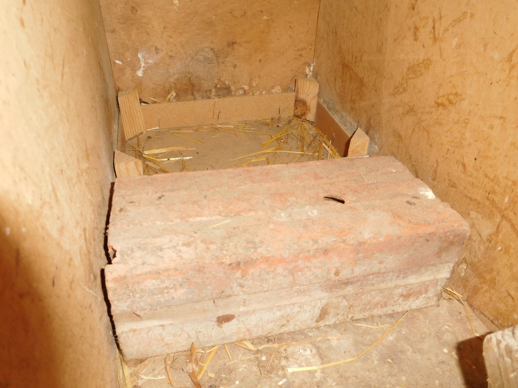 Palomar de madera adaptado para nidales. Donde hay gallinas, hay ratas, porque hay comida. Localizada la comida, intentan instalarse en el interior del gallinero. No se emplean métodos químicos (mataratas). Años antes se habían instalado con una red de madrigueras, debajo de la losa de hormigón donde se asienta el gallinero, pero el modo de liquidarlas era intentar localizar y cerrar todas las entradas a las galerías menos una y luego, con una manguera, inundarlas de agua, controlando la única salida posible. Ahora que no están debajo d ela losa, la parte posterior del palomar es usada con gran eficacia (20-25 ratas aplastadas en 1 año), como trampa antiratas. Si se observa presencia de ratas (heces sobre todo, pisadas, gasto de pienso, elementos roídos,...), se localiza el nido, que se les deja construir (pero evitando que crien). Normalmente encontraremos la rata durmiendo de día, en él. Intentamos matarla en el nido con un palo. Si se escapa corriendo, en este caso normalmente se refugia detrás del palomar. Tras él, se ha dejado una holgura suficiente para que entre a refugiarse. Cuando la hemos localizado, presionaremos la estructura de madera, desde delante contra la pared y la aplastaremos 1024x768, 350.7 KB |