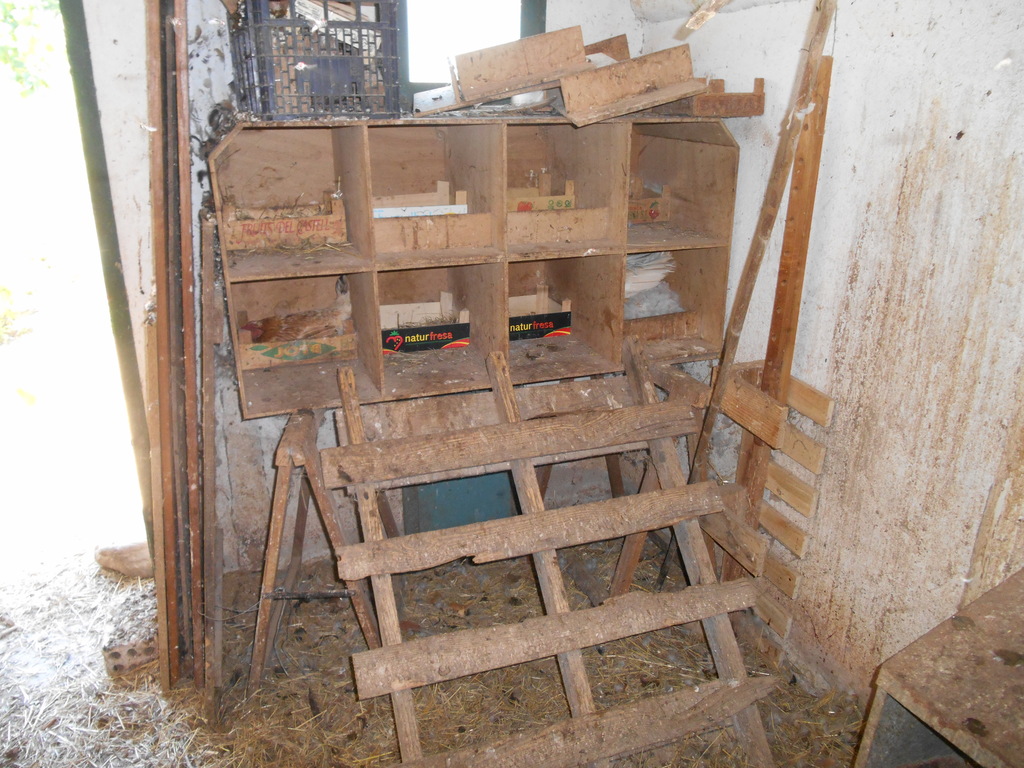Aseladero exterior bajo cubierto. Las aves para sacrificio se capturan de noche, cuando están durmiendo. El palet está colocado como embudo-trampa, por si interesa coger las aves de día 1024x768, 390.9 KB |
