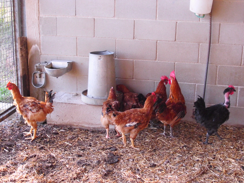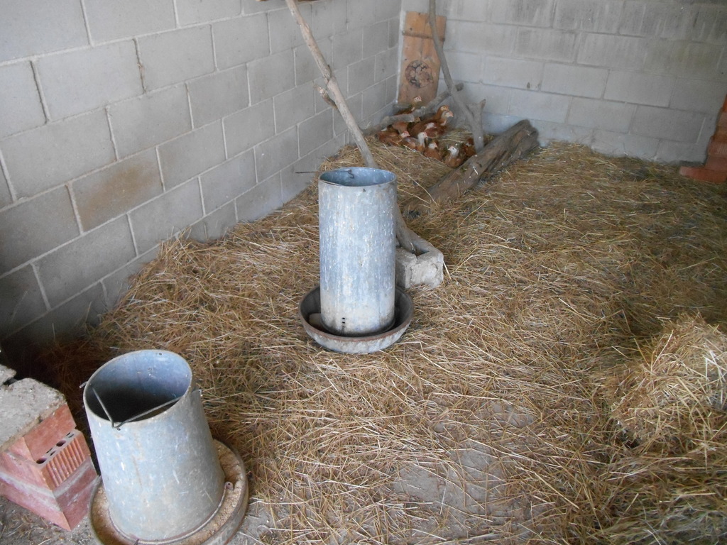 Ante los ataques de rapaces, se adaptó y protegió uno de los corrales, para el cebo: engorde de pollitos rubios para la Navidad de 2016: bebederos, comederos, aseladeros y cama de fanal. Cuando compras pollos de engorde, normalmente están sexados y son siempre machos 1024x768, 347.2 KB |