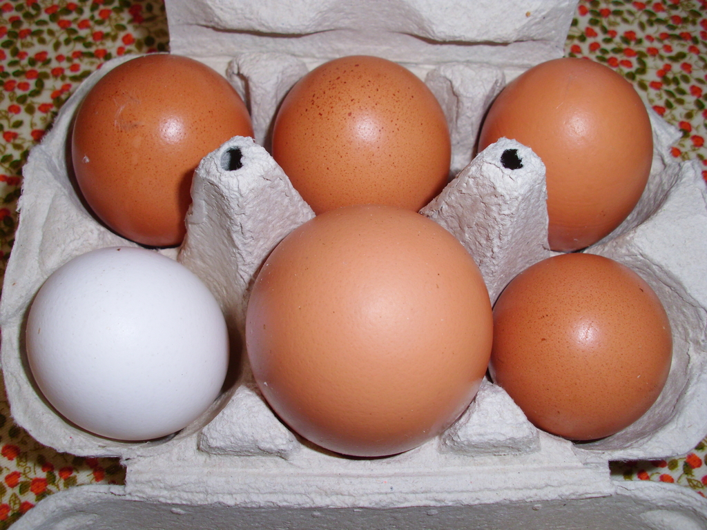 Los huevos de gallina son de cáscaras de distintos colores y tamaños (este grande sería de yema doble) 1024x768, 717.6 KB |