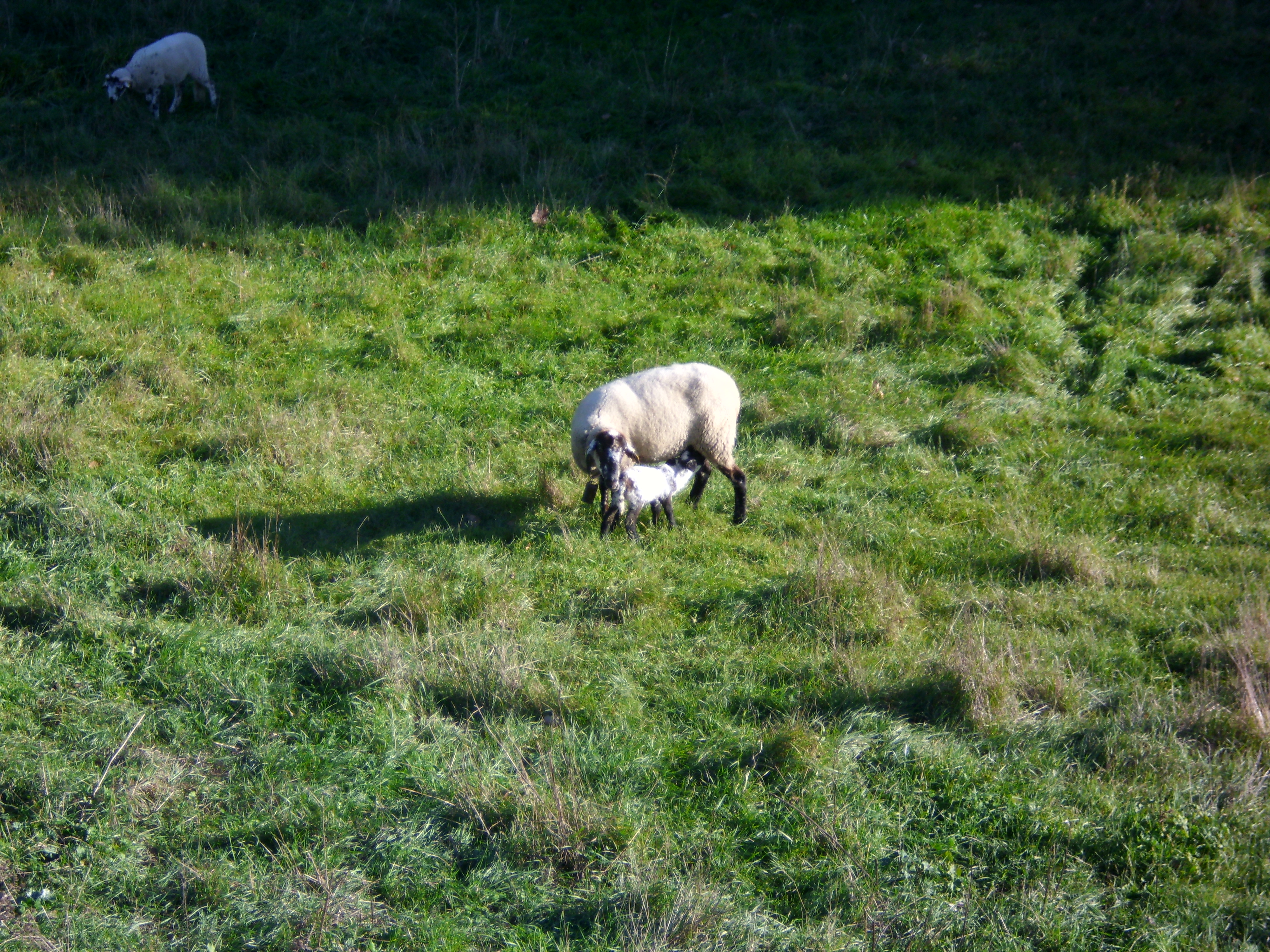 Cordero al mamar, levanta la cola y la mueve, oscilando en vertical, la madre le huele el culo y lo identifica como propio 4000x3000, 7.8 MB |