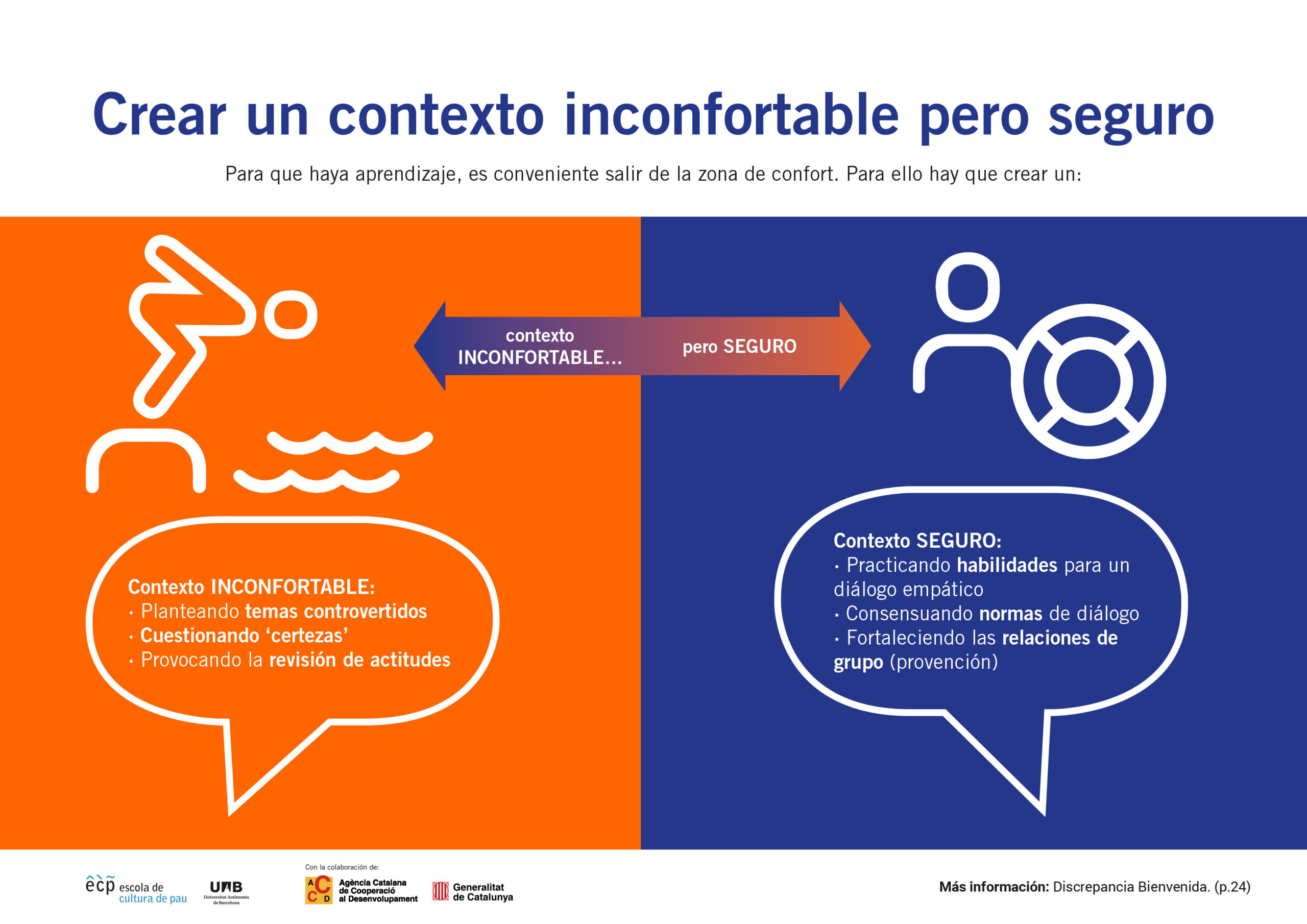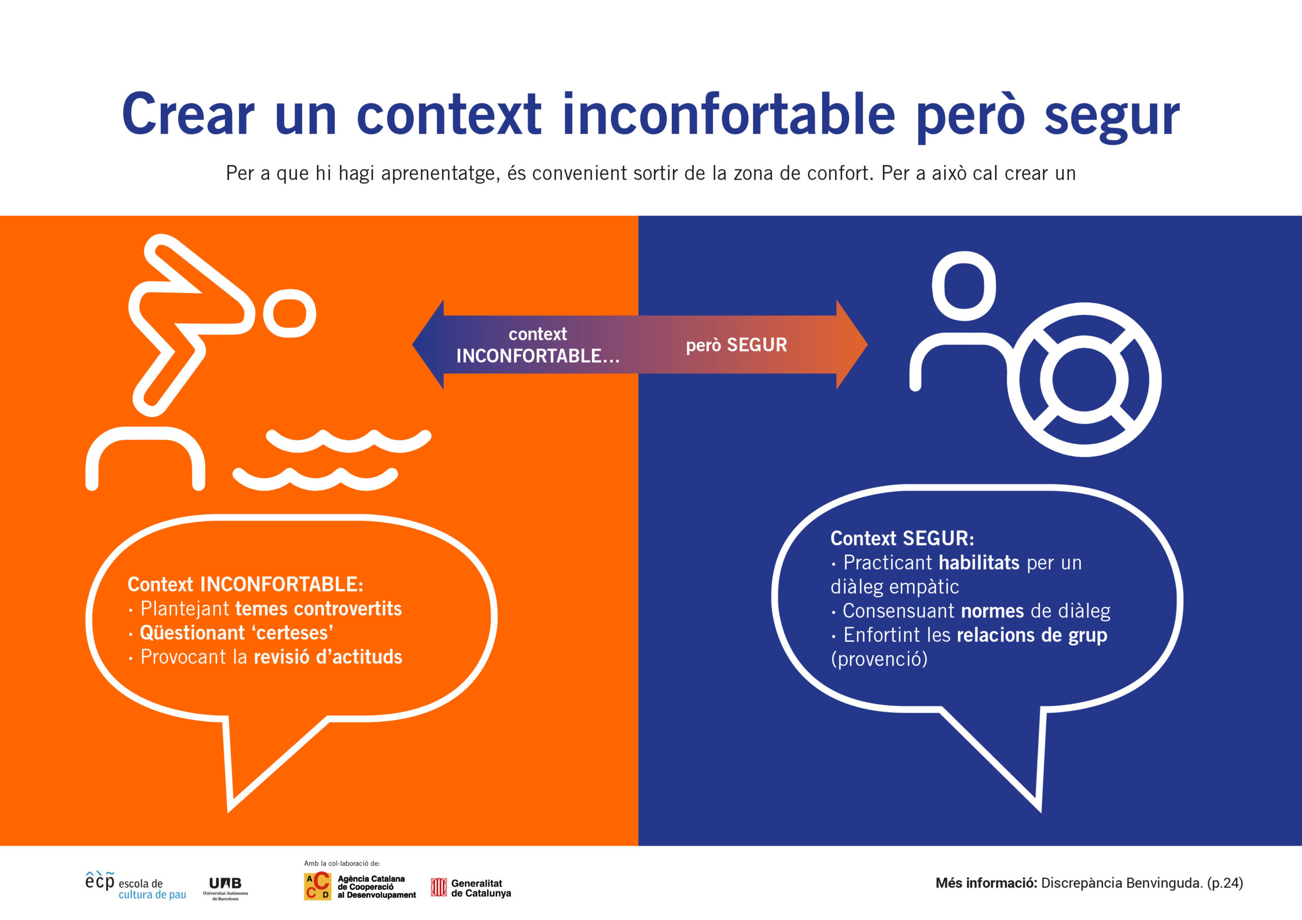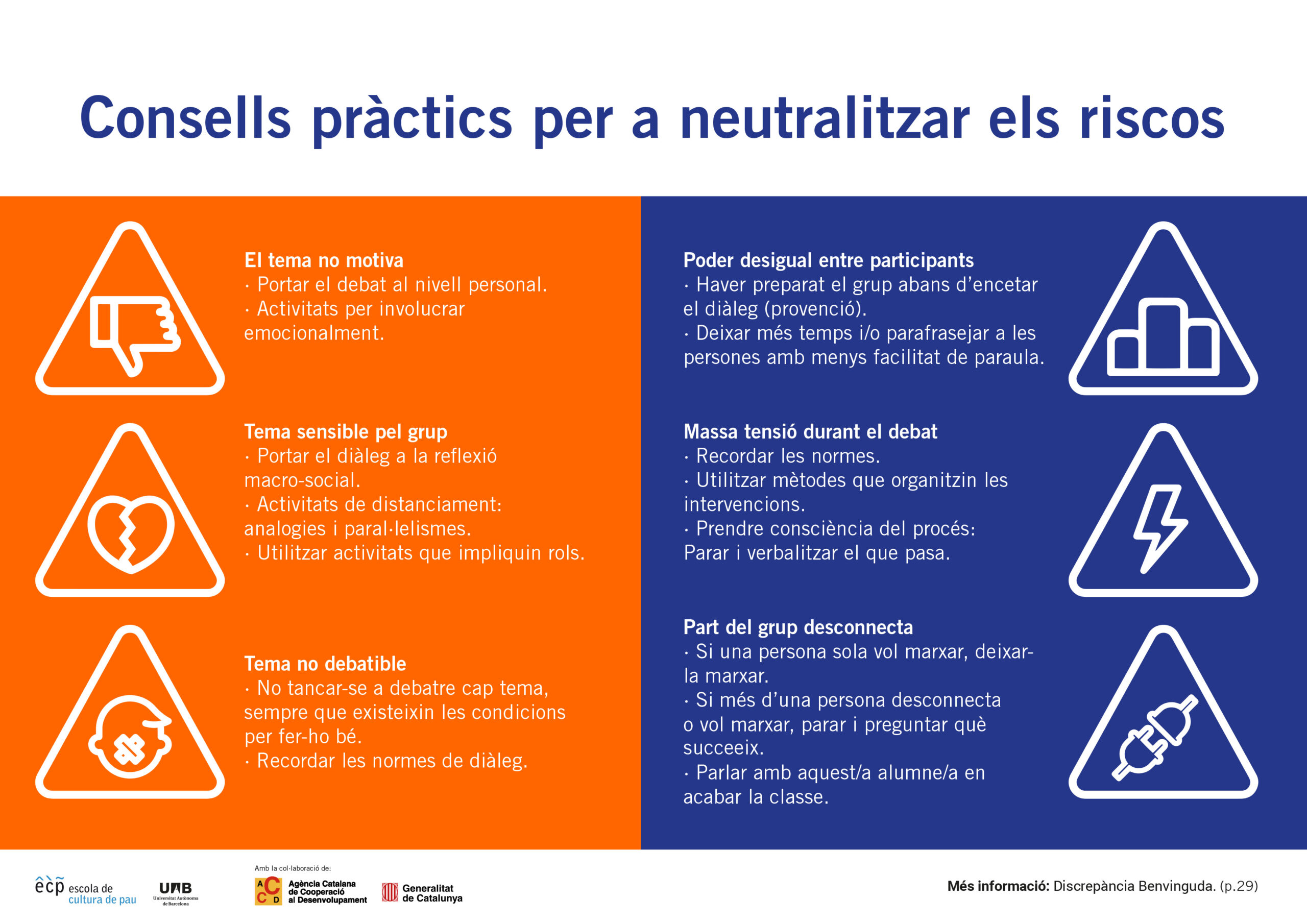 Resum: La guia té com a objectiu principal aportar eines al professorat per animar-lo a dinamitzar diàlegs controvertits a l'aula. Neix de la necessitat de conviure amb la diversitat de persones, col·lectius i punts de vista que conformen la societat contemporània. S'acompanya d'infografies amb els principals conceptes.