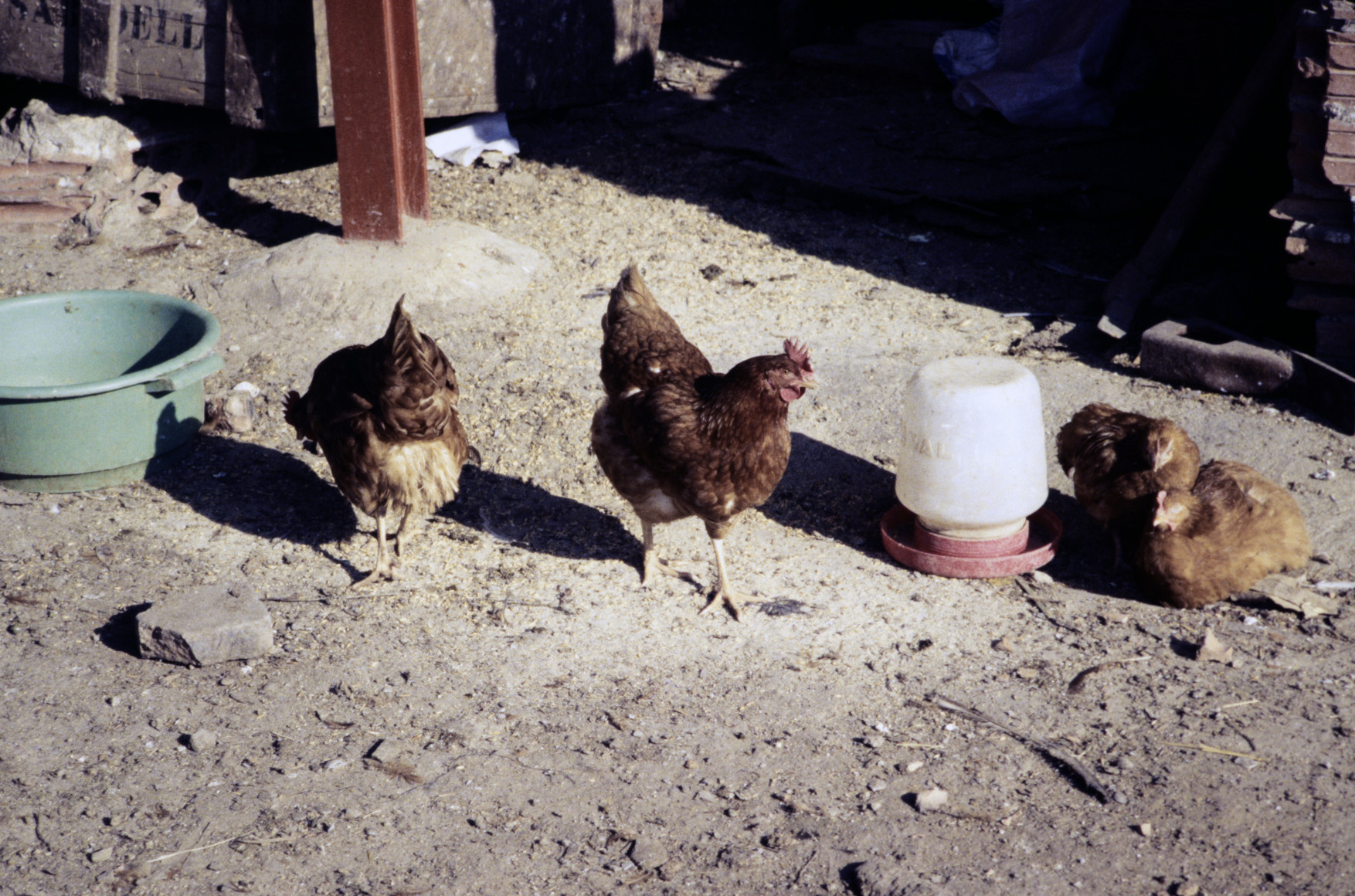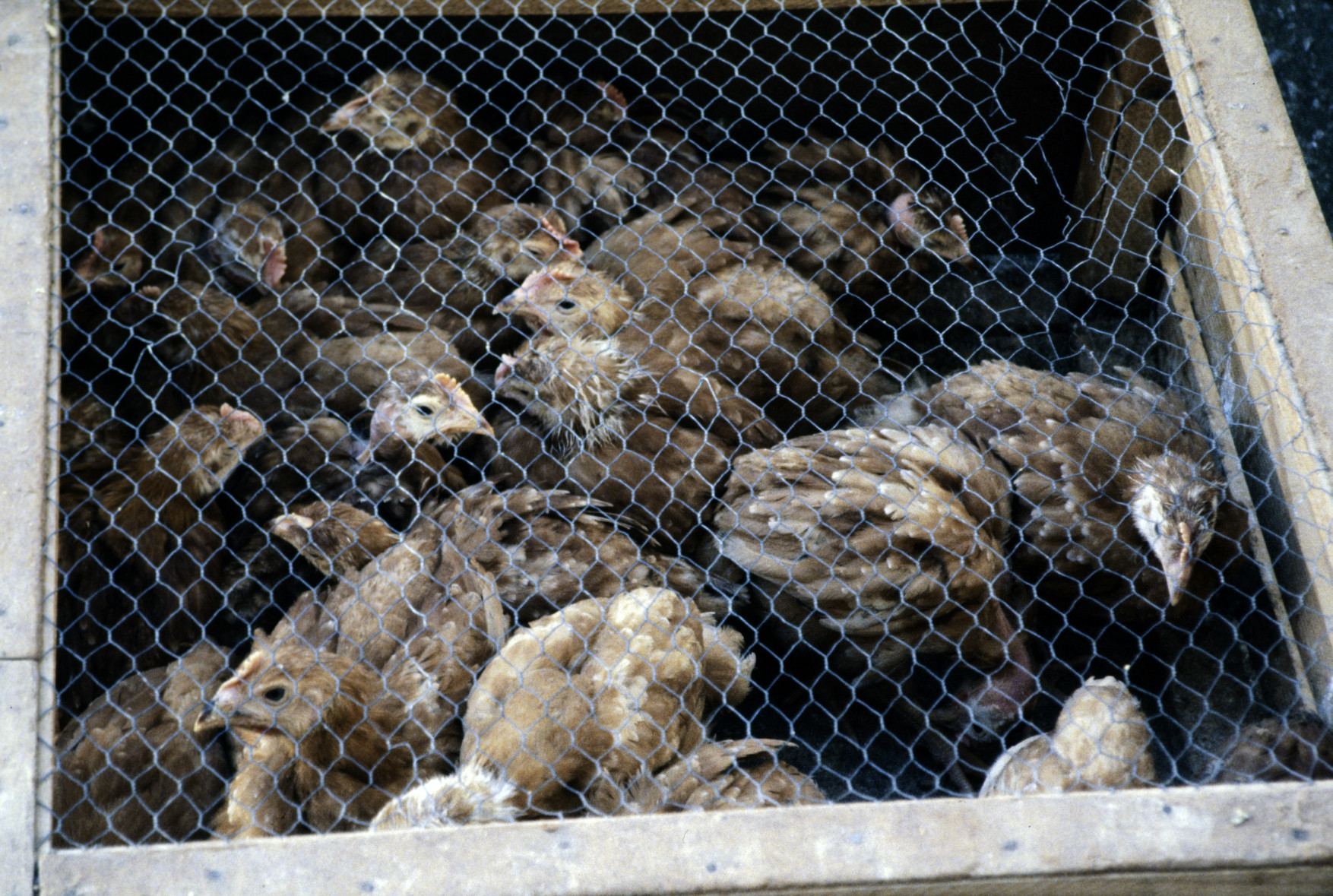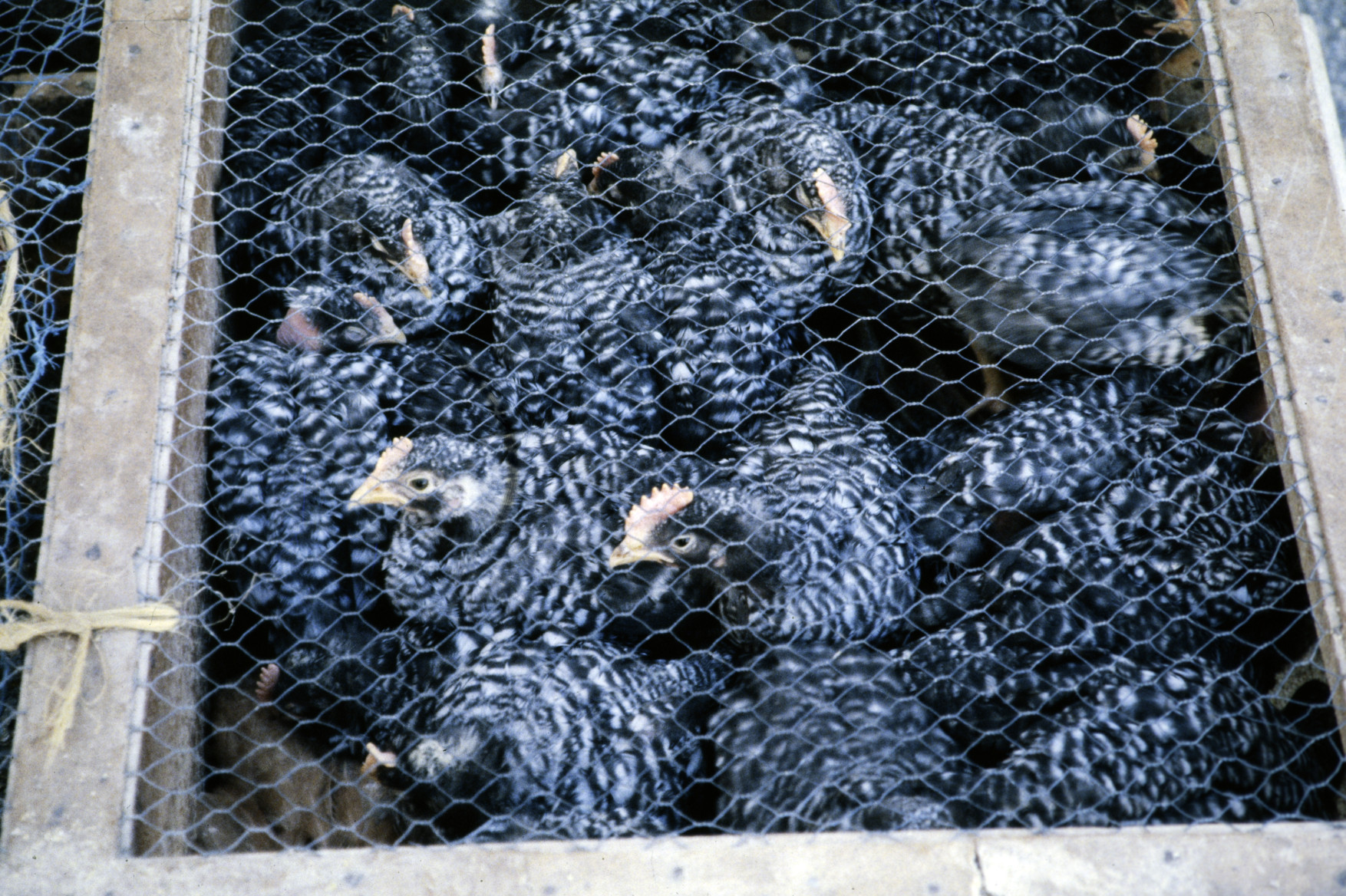 Pollos de 15 días para vender como pollos de payés por Navidad, con 3-4 meses de vida, colocados en franja luz del sol (1992) 1754x1147, 399.1 KB |